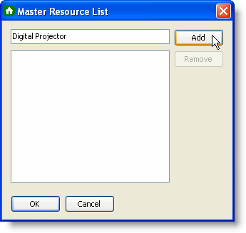 Scheduler for WinForms supports resources created in code or at run time through the Master Resource List dialog box. The following code, added to the Form_Load event, creates a Digital Projector resource: