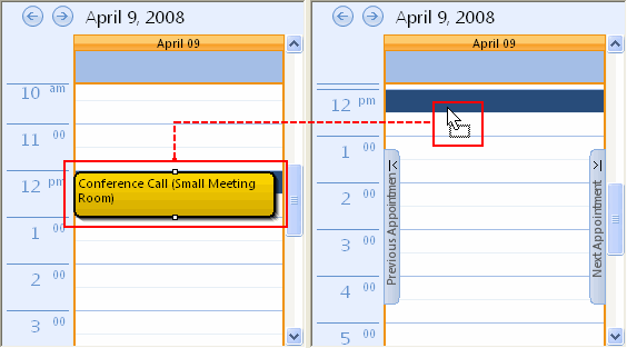 Note: if there are several C1Schedule controls in application, appointment will be moved to the C1Schedule control specified in Schedule property. |