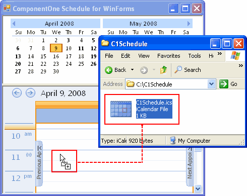 The C1Schedule and C1Calendar controls include drag-and-drop support. At run time, users can interact with Scheduler for WinForms with Outlook-style drag-and-drop functionality. Note that you can use the BeforeAppointmentDrop event to cancel a drag-and-drop operation or customize drag-and-drop behavior.
