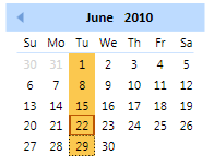 | Using the C1Calendar Control > C1Calendar Behavior > C1Calendar Selection |