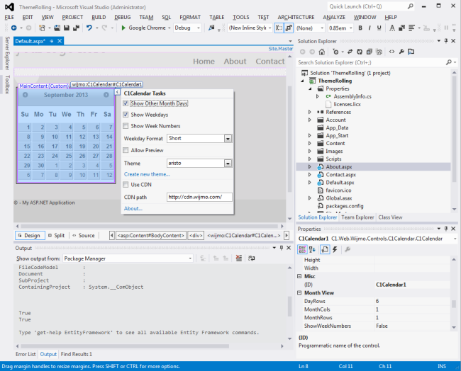 In this step, you'll roll a theme using ThemeRoller for Visual Studio.