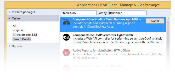 This topic demonstrates how to install NuGet packages for using Cloud Business App controls.