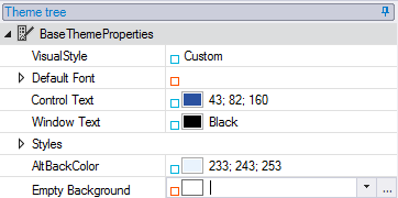 The new property, Empty Background, appears below the Styles property in the BaseThemeProperties Theme Tree.