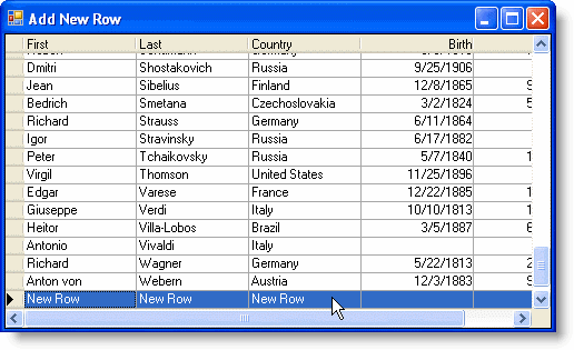 | True DBGrid for WinForms Task-Based Help > Adding a New Row to C1TrueDBGrid |