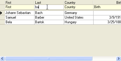 You can now easily add a text watermark to the filter bar so that it appears with default text. You can use this watermark to add instructions for filtering text, or adding default values to give users a better understanding of what values can be entered in particular filter bar cells. All you need to do to have text appear in the filter bar is set the FilterWatermark property to a string.