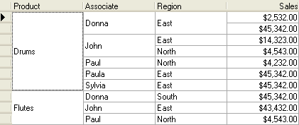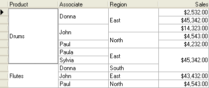 If the underlying grid data is sorted, the readability of the display may be improved by grouping adjacent like-valued cells within the sorted column(s). The Merge property of the C1DisplayColumn object controls whether its data cells are grouped in this manner to form a single non-editable cell, using the ColumnMergeEnum. By default, this property is set to None, and each physical row within a column displays a data value, if any.
