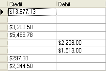 Another technique for updating an unbound column is to use the AfterColUpdate event to adjust the value of other (bound) columns. For example, imagine a pair of columns for Debit and Credit, as shown in this portion of a grid display: