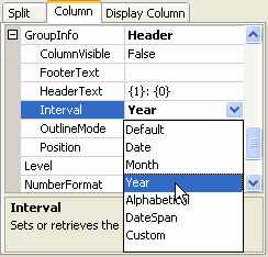 Locate the Interval property in the left pane of the C1TrueDBGrid Designer and set it to Year.