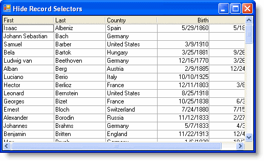 | True DBGrid for WinForms Task-Based Help > Setting the Grid's Appearance > Hiding the Record Selectors Column |