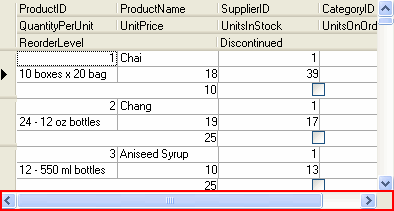 Setting the DataView property to DataViewEnum.MultipleLines enables the end user to simultaneously view all of the columns (fields) of a record within the width of the grid without scrolling horizontally. But if you want to have more control over the multiple line data view, including visible horizontal scroll bars, you can set the DataView property to DataViewEnum.MultipleLinesFixed instead.