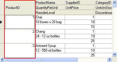 Note that you can also merge the left-most column. Setting the Merge property allows the left-most column to span the height of the row. For example in the image below, the ProductID column spans the row: