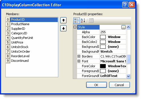 In this analogy, specifying paragraph attributes directly is akin to setting the members of a property that returns an anonymous style. For example, to vertically center cell data within a particular grid column, modify the VerticalAlignment member of the column's Style property in the C1DisplayColumnCollection Editor.
