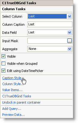 To place an image in a column header using the C1TrueDBGrid Tasks menu: