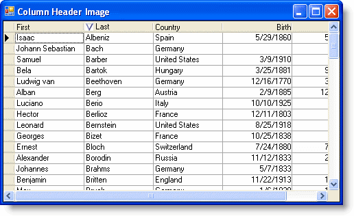 | True DBGrid for WinForms Task-Based Help > Setting the Grid's Appearance > Placing an Image in a Column Header |