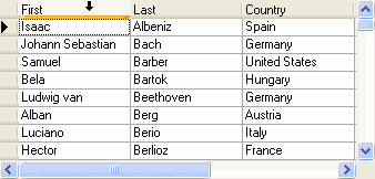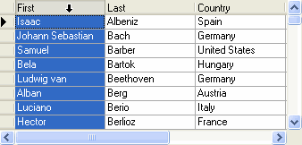 When the user points to the header of an unselected column, the mouse pointer changes to a down arrow to indicate that the column can be selected: