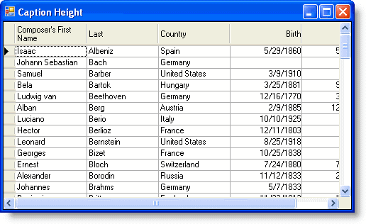 this.c1TrueDBGrid1.Columns[0].Caption = "Composer's First Name"; |