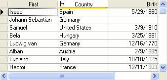 If the user drags the pointer all the way to the left, the column retains its original Width property setting, but its Visible property is set to False. To make the column visible again, the user can point to the right side of the divider of the column that preceded it. The pointer turns into a vertical bar with a right arrow.