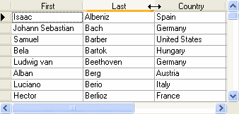 If the AllowSizing property is True for a column, the user can adjust the width of the column individually at run time. When the user points to the divider at the right edge of a column's header, the pointer changes to a horizontal double arrow that the user can drag to resize the column in question.