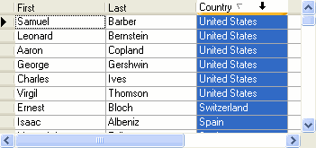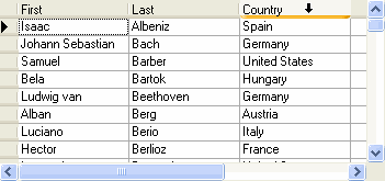 If the AllowSort property is True (default), the user can sort columns by clicking on column headers. When the mouse is over a column header, the header will appear highlighted: