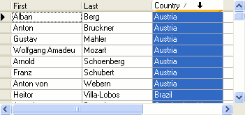 If the user clicks on the column header once with the mouse, the column is sorted and a sort indicator arrow appears in the column header to indicate the direction of the sort: