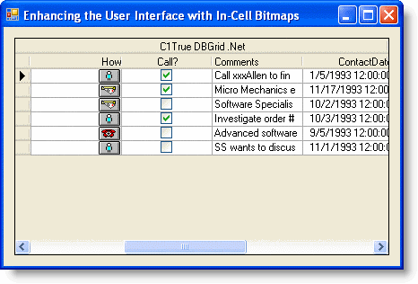- Click a cell in the Call? column and observe how the cell cycles through the check box bitmaps.