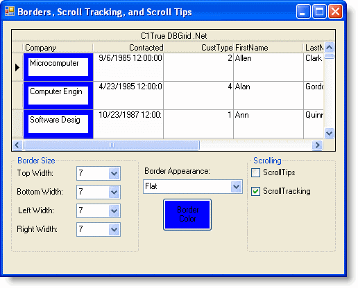 | True DBGrid for WinForms Tutorials > Tutorial 22: Borders, Scroll Tracking, and Scroll Tips |