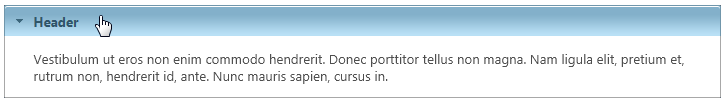 The C1ExpanderExtender control allows you to show or hide embedded or external content within an expanding panel using various animation effects. The expanding content can be shown or hidden by clicking on the expander header at run time.