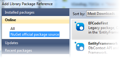 - Click Online and then click NuGet official package source.