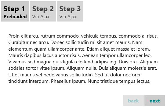 The wijwizard widget supports loading content through Ajax. This topic will demonstrate how to set the wizard to load content via Ajax.