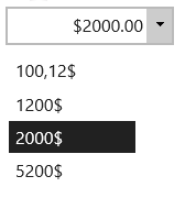 comboItems: [{ label: '100,12$', value: 100.12 }, { label: '1200$', value: 1200 }, { label: '2000$', value: 2000 }, { label: '5200$', value: 5200}],