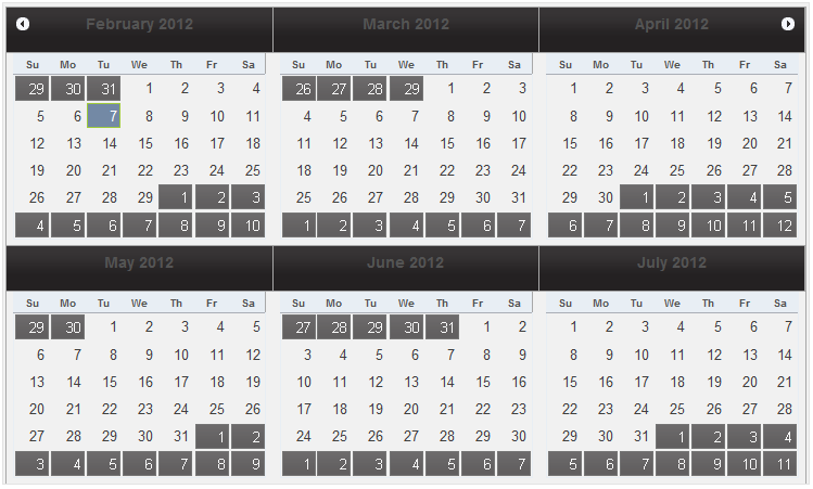 | Widgets > wijcalendar > wijcalendar How To > Display Multiple Calendars |