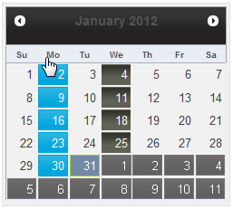 | Widgets > wijcalendar > wijcalendar How To > Select Weekdays |