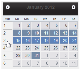 | Widgets > wijcalendar > wijcalendar How To > Select Week Numbers |