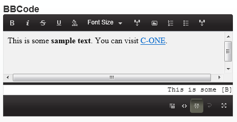 The wijeditor widgets supports BBCode, or Bulletin Board Code, which is a markup language used to format posts in message boards. Simply set the mode option in the script to take advantage of this feature. See the Editor > BBCode sample of the MVC Control Explorer live demo at http://demo.componentone.com/ASPNET/MVCExplorer/editor/BBCode.