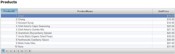 In this tutorial, you created a wijgrid widget using a table on the client. If you'd like to create a wijgrid dynamically on the server, see the Creating a wijgrid on the Server topic for details.