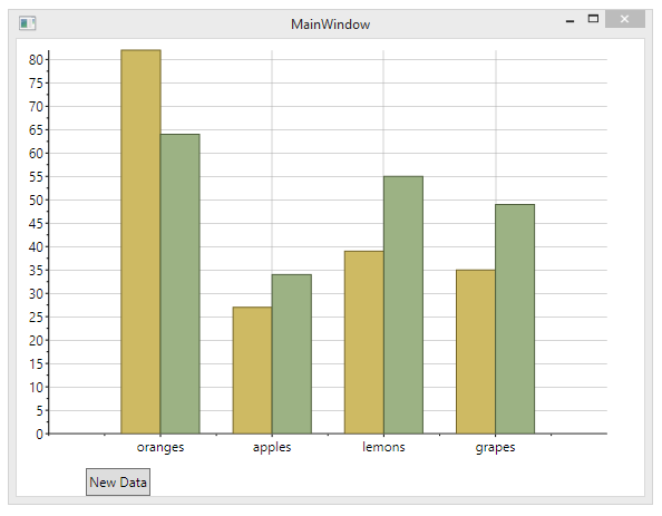 public class SampleItem { public string Name { get; set; } public double Value { get; set; } static Random rnd = new Random(); public static SampleItem[] CreateSampleData(int cnt) { var names = new string[] { "oranges", "apples", "lemons", "grapes" }; var array = new SampleItem[cnt]; for (int i = 0; i < cnt; i++) { array[i] = new SampleItem() { Value = rnd.Next(1, 10), Name = names[rnd.Next(names.Length)] }; } return array; } } } } |