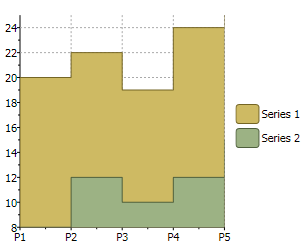 The following image represents the Area Step chart with symbols when you set ChartType property to StepArea.