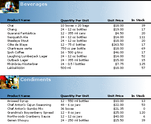 The following image shows a report that uses gradient fields over the labels in the Group Header section: