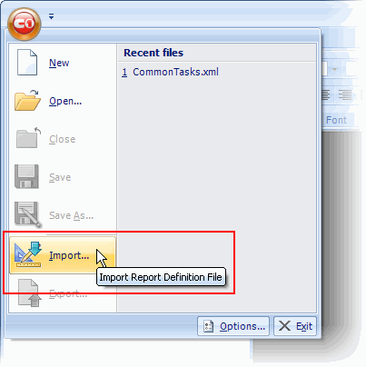 The C1ReportDesigner application can also import Crystal report definition files (.rpt files).