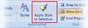 The Apply Style to Selection button applies the style of the reference field to the entire selection. The style of a field includes all font, color, line, alignment, and margin properties. You can use the Properties window to set the value of individual properties to the entire selection.