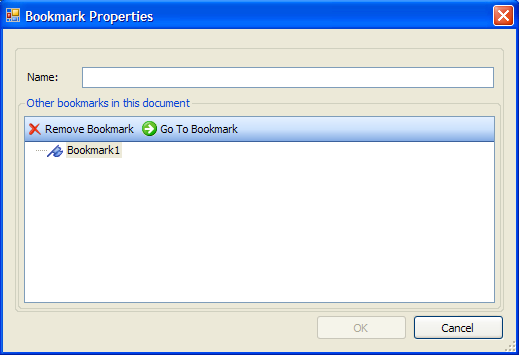 In the Bookmark Properties dialog box, users can create a new bookmark by entering a name in the Name text box. They can also jump to or remove an existing bookmark.