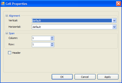 Click the drop-down arrows to specify the vertical alignment: top, middle, or bottom. |