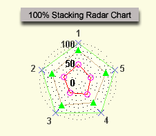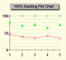 Use the IsYAxis100Percent and IsY2Axis100Percent properties to scale the Y and Y2 axes of stacking charts to a common 100 percent value. When Is[YY2]Axis100Percent is false, the actual series data is used. When Is[YY2]Axis100Percent is true, the data is scaled so that all points are the same height and each series is scaled to a total of 100 percent.