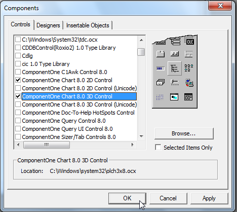| ComponentOne Chart 8.0 > Adding the Chart 8.0 Controls to Visual Basic Projects |