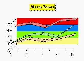 AlarmZones are a series of bands that can be placed behind the plotted data, but in front of the chart background. Generally, they are used in much the same manner as grid lines, but because of the ability to modify the alarm zones, tend to be more visually appealing. By using the UpperExtent and LowerExtent properties, you are able to adjust each alarm zone band to specific values.