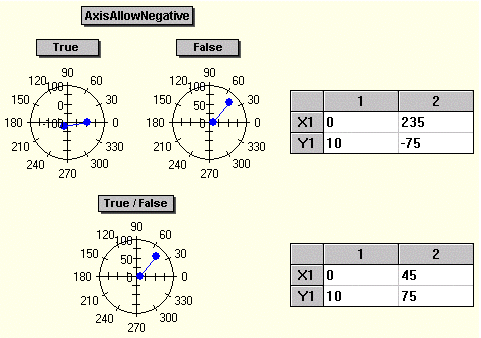 Use the AxisAllowNegative property to specify whether or not to permit negative values for r. When AxisAllowNegative is enabled, the chart shifts the axis to accommodate negative values. When AxisAllowNegative is disabled, a negative radius is interpreted as a positive radius rotated 180 degrees.