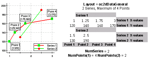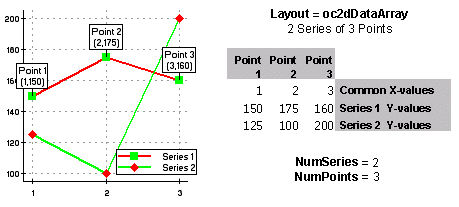 · The Layout property specifies the data layout. Its value must be a data layout constant specifying either array or general data. If array data is specified, each series is assumed to have the same number of data points.