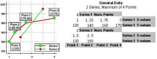 · Use the Layout, HoleValue, NumSeries, and NumPoints properties to set the format, size, and hole value for the data. Use the ThisSeries and ThisPoint properties to select a specific data point, and edit the values of the X property and Y property. These properties are also located on the Data Tab (ChartGroups) on the Property Pages.