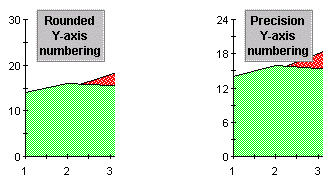 Use the NumMethod axis property to select the method used to number an axis. “Round” rounds the numbering determined by the precision, numbering and ticking increments and usually provides the most pleasing display. “Precision” determines numbering by the precision, numbering and ticking increments and produces coarser and more irregular numbering. NumMethod is located on the Annotation Tab (Axes) on the Property Pages.