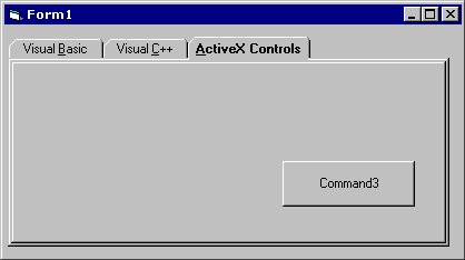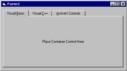 Note that you should create the pages in the proper order--first the page for tab 0, then the page for tab 1, and finally the page for tab 3. This is because whenever you see the "Place Container Control Here" message, the next container control created is assigned to the first tab that does not yet have a page, not to the current tab.
